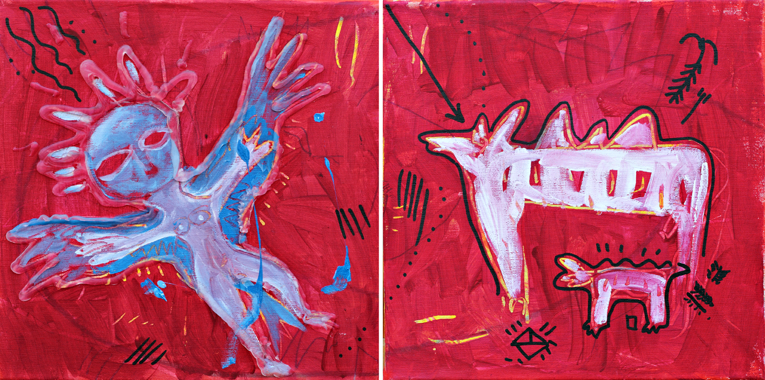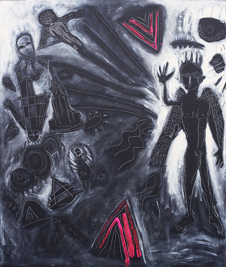 Ludzkość uznawała dotąd tylko ekskluzywne światy sztuki, jak ekskluzywne są religie; nasza sztuka jest Olimpem, gdzie wszyscy bogowie, wszystkie cywilizacje zwracają się do wszystkich ludzi, którzy rozumieją język sztuki (jak nauka zwraca się do wszystkich rozumiejących jej język...) Każda cywilizacja miała swoje święte miejsca; teraz ludzkość odkrywa swoje. (…) Wszystko to łączy się z sobą po raz pierwszy w świecie, gdzie umierające fetysze zyskują życie, jakiego nigdy nie znały; i ten świat przedstawień, który ludzka twórczość przeciwstawiała czasowi, po raz pierwszy odniósł zwycięstwo nad czasem.1 Ten wielobarwny świat wierzeń, mitów i legend ożywa za sprawą malarstwa Piotra Ambroziaka. Czas i miejsce nie mają tu znaczenia, najważniejszy jest pierwiastek stanowiący o naszym człowieczeństwie, duchowość przekazywana niczym życiodajna iskra. Obrazy jak nakładające się klisze podświadomości przywołują nasze demony oraz pragnienia łączności ze Stwórcą, zapełnienia tajemniczej pustki i samotności tu na ziemi. Aniołowie i kosmici, pozaziemskie byty, posłańcy łączący to co rzeczywiste i nadprzyrodzone. Dr Michael Rappenglueck w pokrywających groty Lascaux wyobrażeniach zwierząt i scen polowań dostrzegł obraz nieba sprzed bez mała 17 tys. lat. Nasi przodkowie też zwracali oczy ku niebu, które dla nich zamieszkane było przez zwierzęta i duchy-przewodników. To pierwsze znane nam planetarium, świadectwo tęsknoty za tym co mistyczne, do końca nieodgadnione. Dla współczesnej cywilizacji mieszkańcy kosmosu to przeobrażone mityczne siły, religia obleczona w szaty nowoczesności, cywilizacyjna legenda.