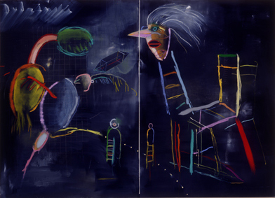 Ascetyczne, zintelektualizowane, skonceptualizowane, dosłownie - obiektowe artefakty klasyków sztuki lat 70.-80. minionego stulecia, zestawione zostały z wrażeniowymi, intuicyjnymi, wysmakowanymi w kolorach i efemerycznej formie pracami tradycyjnie tworzącego malarza. Ustrukturyzowane geometryzujące formy klasyków, ograniczone w kolorystyce do bieli-czerni, monochromu, celowo skontrastowaliśmy z feerią barw, plam świateł i koloru na bieli płócien, przedstawiciela młodszej generacji (prace z 2017 r.).