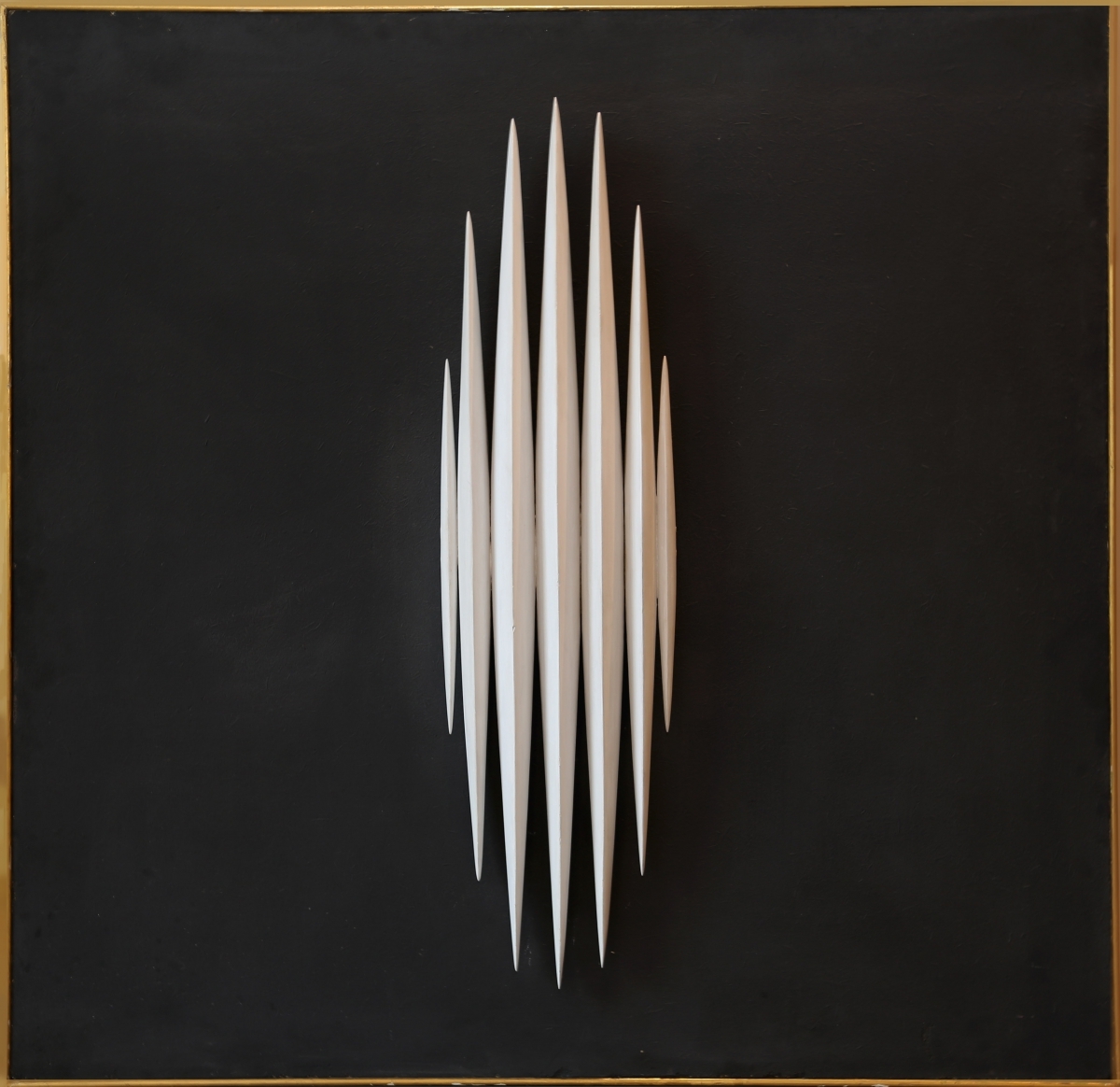 Alfa Studio - po lewej: Tadeusz Szpunar, Kompozycja II, 1972, relief, drewno polichromowane, 123 x 123 cm;