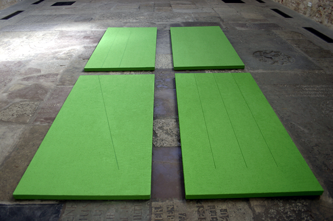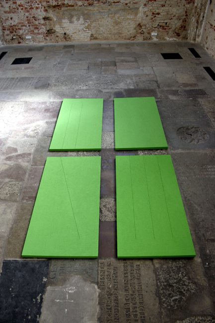 Obraz, na który składały się zestawione ściśle ze sobą w układzie horyzontalnego pasa moduły malowane grubą, chropowatą zielenią, pojawił się po raz pierwszy w 1999 roku. W 2004 roku, w serii pojedynczych obrazów eksponowanych w Museum Modern Art w Hünfeld pt. „Zieleń w Hünfeld zachowały charakterystyczną fakturę, która wskazywała równoważność zielonego pigmentu i światła załamującego się w jej bruzdowatym zróżnicowaniu obecnym na całej powierzchni płótna. Obecne w kompozycji krzyżujące się pionowe i poziome linie lub linia pojedyncza wyrażone na skutek wgłębienia rylcem w materii farby nie ingerowały w materię zieleni inaczej jak przez zróżnicowanie wynikające z załamania światła w dukcie tych linii niczym we wgłębnym reliefie.