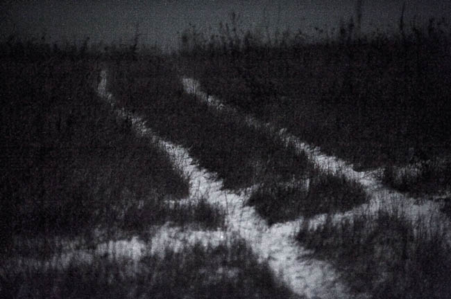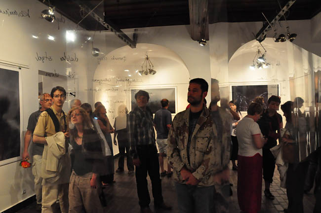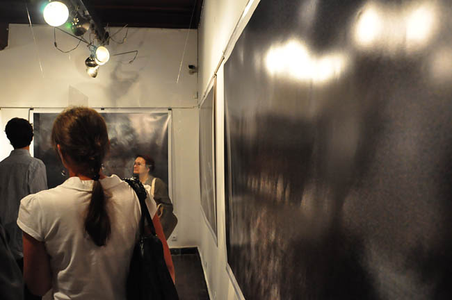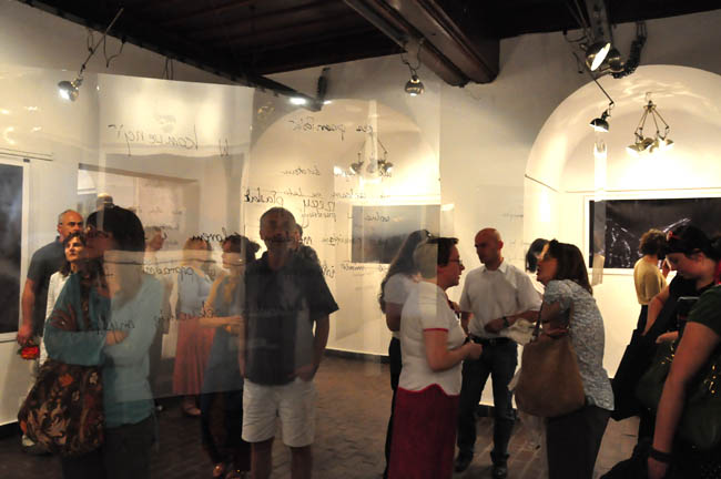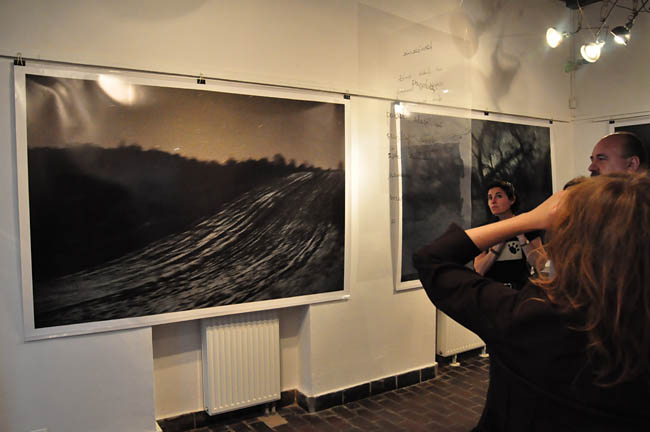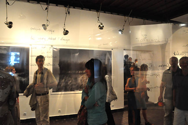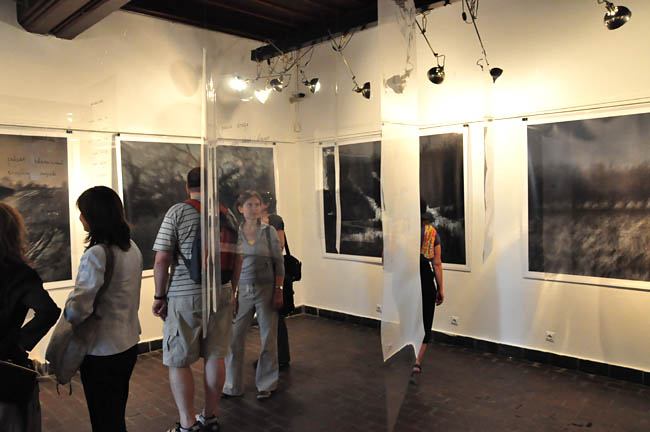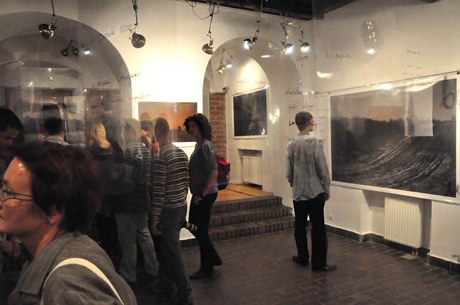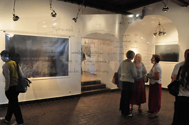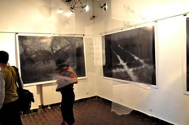 Wielkoformatowe fotografie przedstawiające pejzaże, przetasowane są wiszącymi przeźroczystymi arkuszami z pleksi. Zapełnione są one ręcznym pismem. Trochę niby od niechcenia, zostały naniesione słowa poezji Renaty Plagi. Potrzebna jest chwila skupienia, by treść dotarła do zwiedzającego, ale warto przystanąć na chwilę i poczytać. Widz lawiruje pomiędzy fotografiami a zawieszonymi arkuszami z poezją.