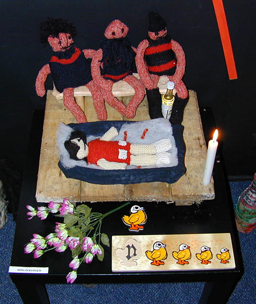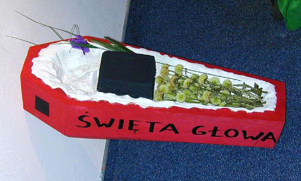 Najbliżej wystawie w Zoyi chyba do meksykańskiego festiwalu Día de los Muertos - święta zmarłych wywodzącego się z kultury prekolumbijskiej, zaanektowanego przez latynoamerykańskie chrześcijaństwo. Charakterystyczny dla tej tradycji jest dominujący w prezentowanych pracach motyw czaszki. Pierwszą inspiracją dla zorganizowania takiej wystawy był prezent jaki dostała Zoya Łucewicz z okazji Dnia Kobiet od swojego syna. Mały Jan Vincent przygotował laurkę w formie makatki z wyhaftowanym ściegiem krzyżykowym kwiatem i czaszką właśnie. Być może był to przejaw dziecięcej fantazji, a być może próba oswojenia oficjalnego i z wielką pompą celebrowanego w Mińsku święta. Faktem jest, że pomysł chwycił, a grupa niezależnych białoruskich artystów stworzyła serię prac, w których śmierć i jej atrybuty zostały potraktowane lekko, zabawnie, humorystycznie i absurdalnie. Dzięki temu śmierć przestaje przerażać, a jej nieuchronność można zaakceptować.