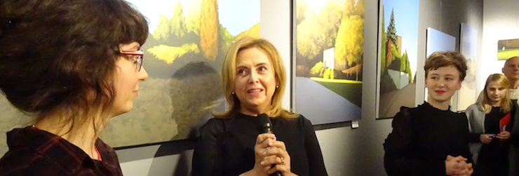 Młoda i utalentowana - wielokrotnie nagradzana absolwentka warszawskiej ASP - zaprezentowała prace, które powstawały na przestrzeni ostatnich kilku lat. Główną oś zainteresowań artystki niezmiennie stanowi natura, miasto i ich wzajemne relacje. Jak napisała kurator wystawy, Blanka Burnat: te prace to nowe, subiektywne spojrzenie na miejsca znane i bliskie. Jasne, czyste, syntetyczne w formie parki, ulice, skwery zastanawiają i przyciągają swą harmonią, nastrojem i pięknem.