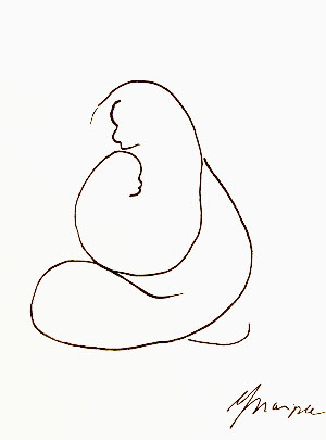 Joanna Szczepkowska wystąpiła w nowej, zaskakującej roli autorki prac plastycznych. Po raz pierwszy zdecydowała się na upublicznienie swoich rysunków w 2000 roku. Wykorzystała je w zbiorze felietonów Drugie podwórko. Delikatne niczym pajęczyna, w sposób aluzyjny odwoływały się do treści poszczególnych tekstów, lub stanowiły rodzaj dyskretnego ozdobnika. Taki był początek artystycznej przygody, która z czasem przerodziła się w autentyczną pasję. Rysunki Joanny Szczepkowskiej przyciągają wzrok wyrafinowaną prostotą i czystością formy. Wizualnie urodziwe, działają na wyobraźnię, prowokują do rozszyfrowania treści zapisanych na nieskazitelnej bieli papieru nieomylną czarną kreską. Nie szuka wielkich tematów, odnajduje je w codzienności. Bohaterami jej rysunków są zwykli ludzie przeżywający swe małe lub wielkie dramaty. Anonimowi przychodnie, w tajemniczy sposób wyróżniający się z tłumu, ludzie z marginesu. Z natury jest ogromnie wrażliwa, przepełniona uczuciem empatii, stąd jej Pijacy i Menele są pełni życia, radośni; nie budzą odrazy, ale sympatię. Niektóre wątki prowokują do kolejnych opracowań. Tak, więc powraca wizerunek bezdomnego skrzypka. Przejmująca w swej wymowie metafora losu zagubionych, zapomnianych artystów… Postacie są zazwyczaj pozbawione atrybutów; autorka wprowadza je, kiedy uzna, że ich obecność buduje dramaturgię. Taką rolę pełni śmietnik, miseczka na jałmużnę i filiżanka stojąca na atrapie kawiarnianego stolika. Większość prezentowanych na wystawie rysunków, ma formę otwartą. Giętka, pewnie prowadzona linia jedynie częściowo wydobywa zarys postaci. Ale potrafi też zapętlić się w miękki celnie zdefiniowany kształt. Spotkamy również przykłady kompozycji budowanych przy użyciu krótkich odcinków pospiesznie położonej ekspresyjnej kreski. Nie budzi zdziwienia fakt, że wszechstronnie uzdolniona i wciąż poszukująca nowych form wypowiedzi autorka, po długim okresie fascynacji rysunkiem, sięgnęła po kolor. Prezentowane na wystawie obrazy zostały zrealizowanie w ciągu trzech minionych lat przy użyciu techniki komputerowej. Graficznie czysty rysunek zastąpiła zróżnicowaną plamą koloru, położonego cienką matową warstwą lub gęstniejącego do emalierskich połysków. Eksperymentuje poszerzając zakres rozwiązań formalnych. Próbuje wypowiedzi w różnych konwencjach. Bywa oszczędna jak w moim ulubionym Swetrze, lub szczelnie na zasadzie horror vacui - zapełnia cały prostokąt kompozycji sylwetkami barwnie ubranych bywalców kawiarni. Znacznie poszerzyła i wzbogaciła zakres inspirujących ją tematów. Zaczyna rozwijać je w cykle. Warto w tym miejscu wspomnieć intrygującą serię prac, do której należy zaliczyć Ciało oraz jego powiększone do nadnaturalnych rozmiarów fragmenty - Usta i Ucho. W szeregu prac wykorzystuje fotografię (m.in. trzy Autoportrety). Wierzę, że zwiedzanie wystawy Joanny Szczepkowskiej było dla Państwa równie fascynującym przeżyciem, jak mój pierwszy kontakt z jej pracami.