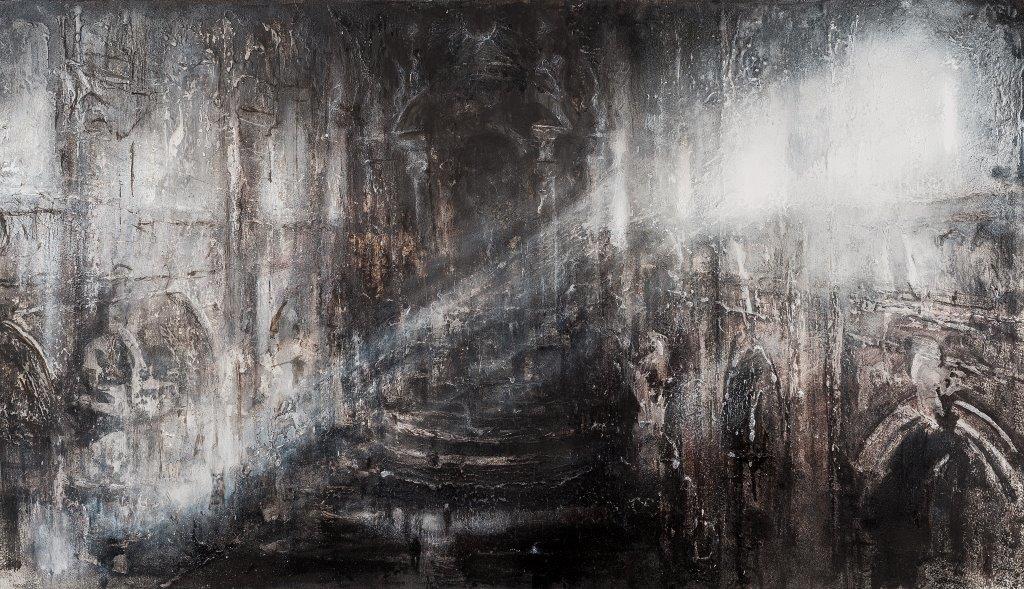Marcin Szymielewicz odkrywa przed nami swoje najnowsze wrażenia z trwającej podróży po europejskich miastach, gdzie szuka tego, co wspólne dla kultury naszego kontynentu. Co znajduje? Wydaje się, że dostrzegł przede wszystkim zagubienie pomiędzy bliżej jeszcze nieokreśloną nowoczesnością, kreowaną przez zmiany społeczne, obyczajowe i ekonomiczne, a bogactwem wyrastającym z tradycji. To co wspólne dla człowieka, to poszukiwanie duchowości, idei określającej nasze miejsce w świecie. Śladem poszukiwań owego wyższego odniesienia są obrazy wnętrz świątyń, może dosłowne, bo pokazane tu jako skąpane tajemniczej atmosferze. Ale artysta widzi, że współcześnie panują inne rodzaje kultu, dlatego nowym świątyniom poświęca nawet więcej uwagi. Nie chodzi tylko o świątynie religii pieniądza, co jest obecnie często krytykowane (nota bene La Défense u Szymielewicza często portretowane, było miejscem manifestacji ruchu Oburzonych) i nieco już banalne, ale także o kult doskonałości technicznej wyrażonej w coraz wyższych i bardziej skomplikowanych wieżach sięgających nieba. Dla artysty topos to ciągłe poszukiwanie przez Europejczyków dowodów na własną doskonałość w przekraczaniu granic, a zmieniające się warunki, wiodące idee i przekonania są tylko kolejnym tematem do zilustrowania. Czy to dawne monumentalne świątynie wznoszone dla Boga, czy dzisiejsze gmachy ze szkła i betonu są tym samym: grą z formą, która ma udowodnić nieograniczoność ludzkiej kreatywności i pokonać czas. A jednak „podrapane” rysunki-obrazy Szymielewicza, gdzie tło sprawia wrażenie, jakby odsłaniało się na kolejnych warstwach odpadających tynków, jest plastycznym komentarzem do nieubłaganego działania czasu, któremu nawet współczesne twory architektoniczne zostaną poddane.