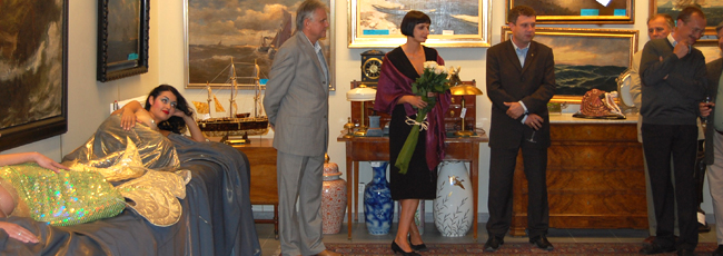 Organizatorzy zadbali o nastrój w każdym calu. Z głośników cicho płynęły odgłosy morskich fal, od czasu do czasu dał się usłyszeć krzyk mew, tłumy zwiedzających podziwiały zebraną przez Sopocki Dom Aukcyjny ofertę. Zebrani goście na dłużej zatrzymywali się przed obrazem "Sztorm" Emmanuela Mané-Katza by podziwiać mistrzowsko oddaną scenę oraz dwie półnagie syreny, które leżąc na specjalnie przygotowanym łożu cieszyły oko nie tylko panów.