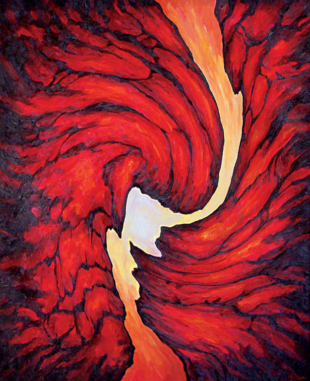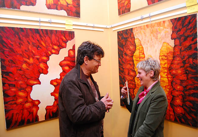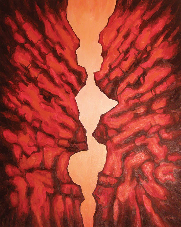 Malarstwo Wita Bogusławskiego inspirację czerpie z natury, z jej nieożywionych fragmentów. Artysta wciągnął do swojego symbolicznego repertuaru form kamienne struktury skał, rodem z amerykańskich parków narodowych i kanionu Colorado, choć sam przyznaje się przede wszystkim do poszukiwań w rejonie Gór Stołowych a nie Skalistych. Nadaje im ciepłą, niemal ognistą i mocno niepokojącą kolorystykę czerwonych ugrów i palonej sieny. Niektórzy z jego kamiennych bohaterów w bardziej dosłowny sposób obdarzeni zostali oczami i ustami, ludzkimi rysami twarzy, traktowanymi jako prefiguracje ludzi pierwotnych, ich najprostszych instynktów i emocji.