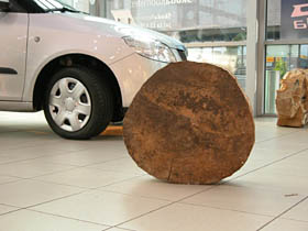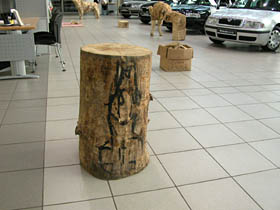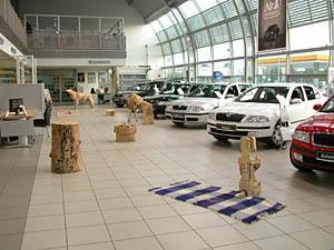 Jedną z nich jest przestrzeń dla rzeźby, jaka została stworzona w warszawskim salonie Skody. Wystawa prac Wojtka Pustoły jest już trzecią z kolei prezentacją, jaka została tu zorganizowana. Poprzednie dwie pokazywały twórczość Józka Nowaka i Sylwestra Abroziaka. Tak się złożyło, zapewne świadomie, że każda z ekspozycji prezentowała rzeźbę w drewnie. I choć były różnie zaaranżowane, za każdym razem w odmienny sposób wykorzystując walory interesującej przestrzeni salonu, dającego poprzez swoją wielkość, wysokość, szeroką płaszczyznę przeszkleń, a dzięki antresoli - różnych punktów widokowych, to każda z nich intrygująco bazowała na opozycji, jaka tworzyła się automatycznie pomiędzy naturalną, chropowatą, ciosaną powierzchnią drewna a błyszczącymi, nowoczesnymi płaszczyznami samochodowych karoserii. Nadawało to obiektom zupełnie nowy kontekst, który działał na drewno jak kontrapunkt, wydobywając jego surowe walory. A że rzeźbiarskie obiekty w trakcie wystawy są w przestrzeni salonu tematem pierwszym i dla każdego z gości w odbiorze obowiązkowym, gdyż kompozycja sali tak je pozycjonuje, to nie ma w takim towarzystwie nic zdrożnego dla sztuki. Zwłaszcza, kiedy pamięta się, że dla futurystów samochód w jego pędzie szybkości był piękniejszy niż klasyczna rzeźba. Szczególnie, kiedy wiemy, że ta teza już po kilku latach nie dała się obronić.
