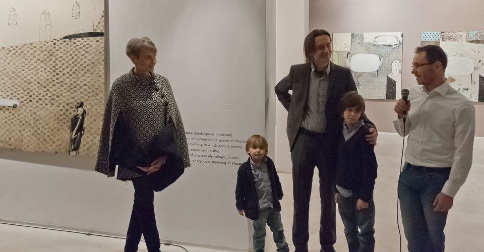 Pod przewrotnym tytułem kryje się cykl obrazów, wśród których nie ma klasycznego pejzażu. Jest parę prac, które można by z pewnym trudem uznać za odmianę pejzażu miejskiego, ale już wnętrze salonu lub kościoła nie mieści się w tej kategorii. Tym bardziej nie jest pejzażem widok rzymskiej via Fani przedstawiający scenę zamachu na Aldo Moro. Nie chodzi więc o pejzaż w klasycznym rozumieniu malarskiej typologii, ale o "landscape" w znacznie szerszym antropologicznym sensie. "Land" w koncepcji, do której odnosi się artysta, oznacza ziemię, która nas zrodziła i uformowała, i do której nieodwołalnie przynależymy. "Scape", a właściwie etymologicznie "shape”, to kształt, jaki ludzie nadają rzeczywistości w wymiarze fizycznym, ale też forma lub raczej formy, w jakie człowiek ujmuje świat, aby go zrozumieć. Ziemia w tym kształcie, której człowiek jest częścią, jest prawdziwym przedmiotem zainteresowania Alka Slona. Plac w Lizbonie nie jest ujęciem z jednego nieruchomego punktu widzenia, tak jak go widzi nieczułe oko aparatu fotograficznego. Staje się formą złożoną, sumą doświadczeń, może też lęków, nadziei i aspiracji. Zawiera w sobie inne place kiedykolwiek zobaczone i odczute - sumę wszystkich placów, co ostatecznie podważa realność jego istnienia. Obraz wypełniają charakterystyczne formy i zagięcia przestrzeni, a w szczególności ogólna emocja miejsca.
