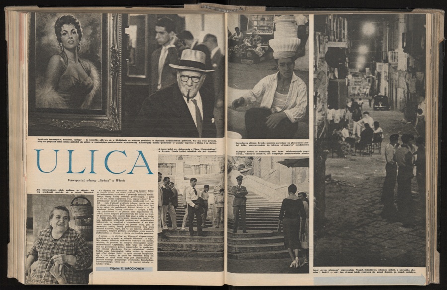 w Tatrach. Świetne technicznie fotografie Konstantego Jarochowskiego ukazujące „designerskie” wnętrza klubokawiarni medyków na warszawskich Bielanach, czy migawki z pokazowych mieszkań na Grochowie wyposażonych przez artystów „Ładu” w wielofunkcyjne meblościanki, zarejestrowały powszechne na przełomie lat 50. i 60. pragnienie nowoczesności i tęsknotę za piękną formą w codziennym życiu. Opublikowana w 1956 r. seria zdjęć Wiesława Prażucha z Częstochowy pokazała przedziwne oblicze tego wyjątkowego miejsca w Polsce, gdzie żarliwa modlitwa pielgrzymów zmieszała się z pejzażem tandetnych straganów i odgłosami sapiących hutniczych pieców wielkiego socjalistycznego kombinatu. Zainteresowanie Jana Kosidowskiego chwytaniem na gorąco życia polskiej młodzieży fotografowanej na warszawskiej ulicy lub podczas wykładów poświęconych filozofii przyniosły refleksyjne i liryczne dokumenty jak Młoda Rzeczpospolita Anno Domini 1963 czy Amicus Plato.