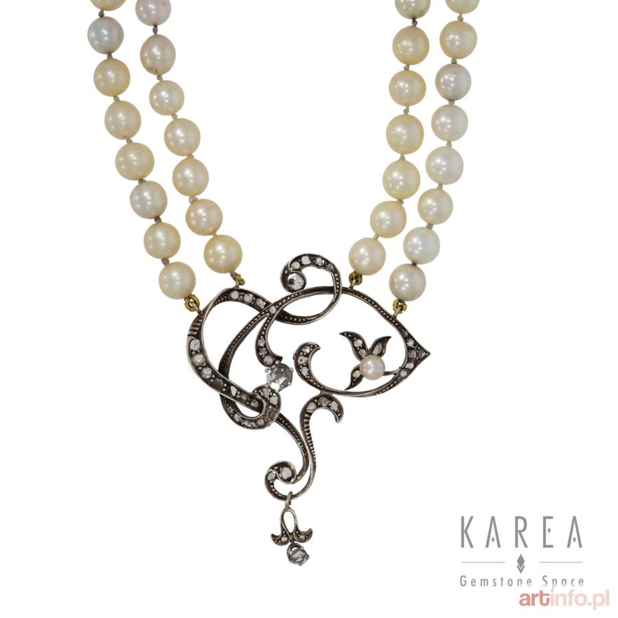 NASZYJNIK PERŁOWY DEKOROWANY WISIOREM EDWARDIAŃSKIM, POCZ. XX W. ,