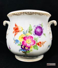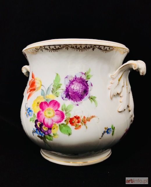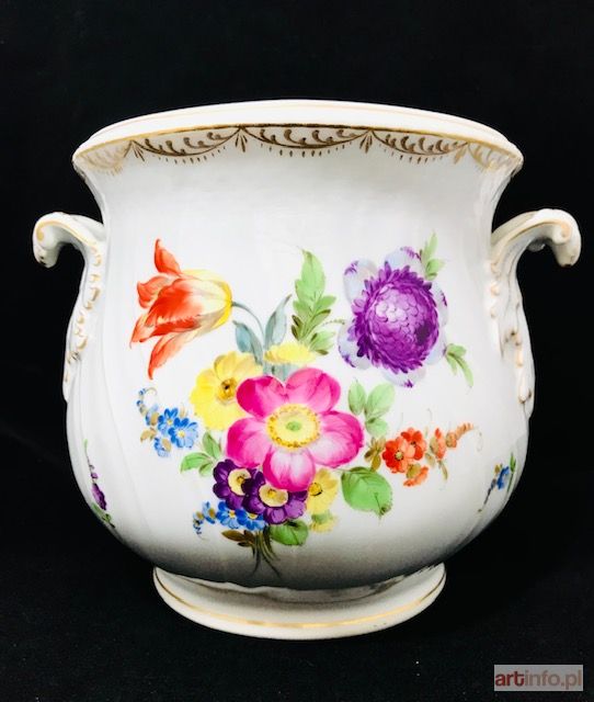 Cache-pot, porcelanowa ozdobna osłona na doniczkę malowana w kwiaty. ,