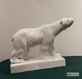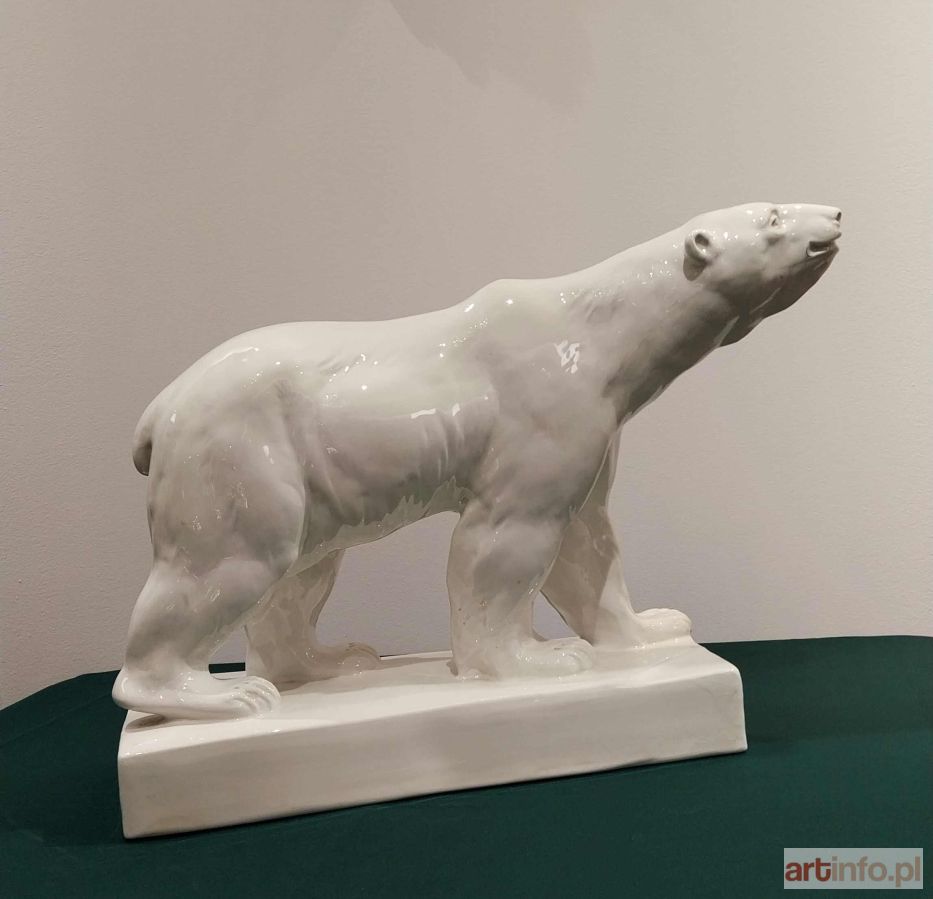 Duża fajansowa figura projektu Franciszka Kalfasa z 1930 roku, pochodząca z zakładów ceramicznych Czeladź Józefów.