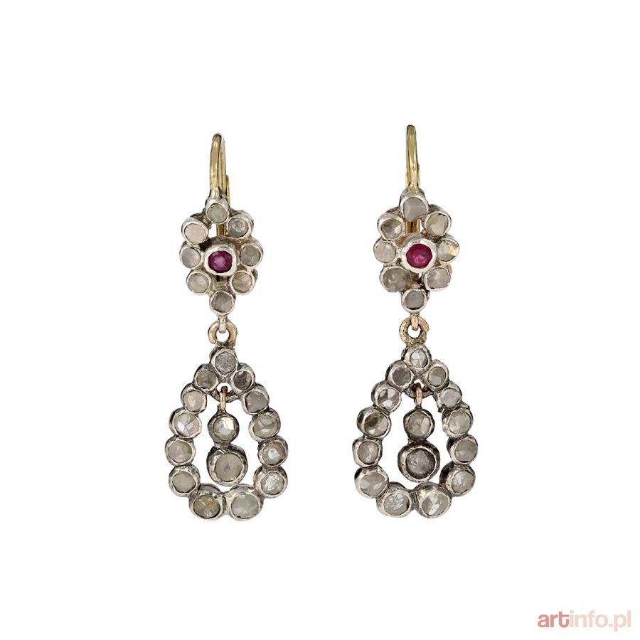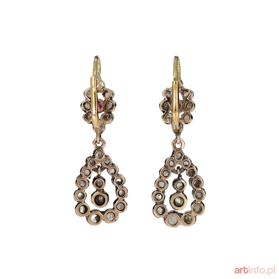 KOLCZYKI WISZĄCE Z ROZETAMI, POŁ. XIX W. ,