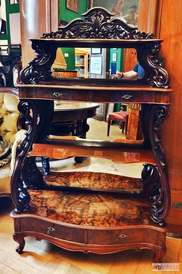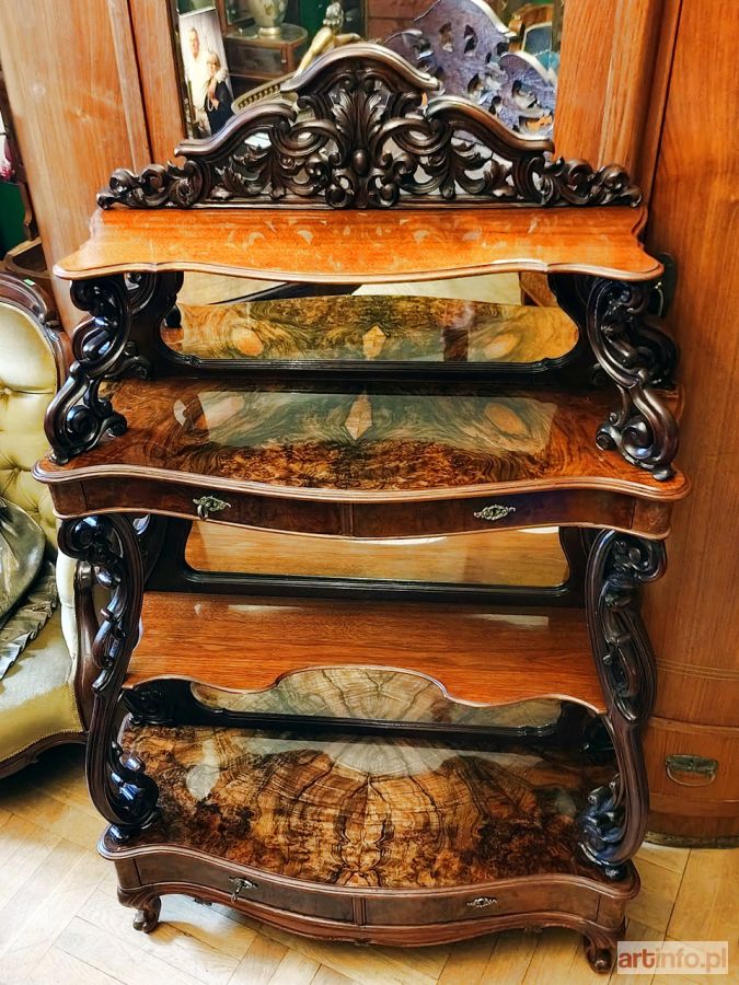 Drewno orzechowe, trój-kondygnacyjna z szufladami.