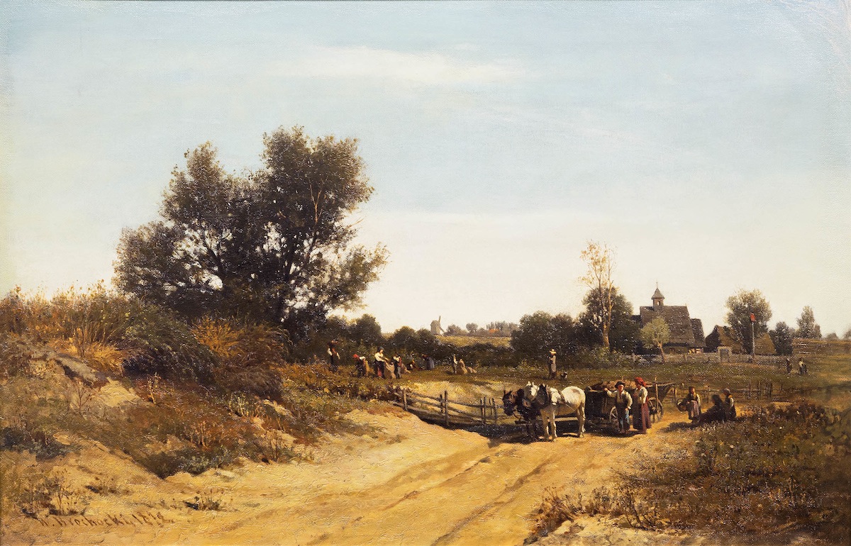 Walery Brochocki, Pejzaż wiejski ze sztafażem (fragment), 1872
